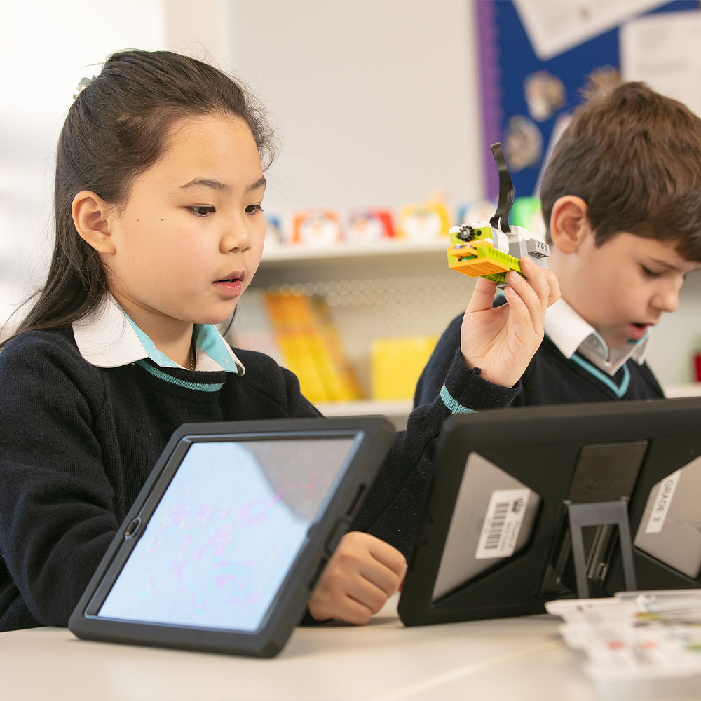 На начальном уровне используется британская программа, охватывающая математику, науку и искусство. Акцент делается на практическом освоении знаний, которые помогают детям лучше усваивать материал. Программы предоставляются носителями языка, что способствует развитию английского языка. В 4 классе добавлена возможность изучения третьего языка.